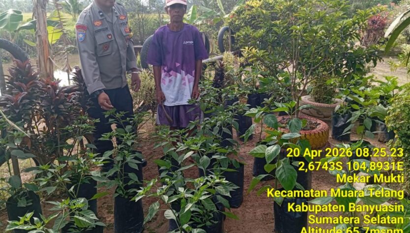BANYUASIN – Dalam upaya mendukung program strategis nasional di bidang ketahanan pangan, Bhabinkamtibmas Polsek Muara Telang menggelar kegiatan himbauan dan penggerakan masyarakat di Desa Telang Jaya, Kecamatan Muara Telang, Kabupaten Banyuasin, Senin (20/4/2026).