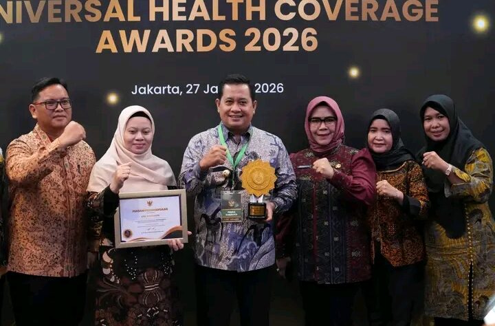 diterima langsung oleh Bupati Banyuasin, Dr. H. Askolani, SH., MH dalam Acara Deklarasi dan Pencanangan Universal Health Coverage (UHC) serta pemberian Penghargaan Pemerintah Daerah Tahun 2026 digelar di Ballroom JIEXPO Kemayoran Jakarta Pusat, Selasa (27/01/2026).